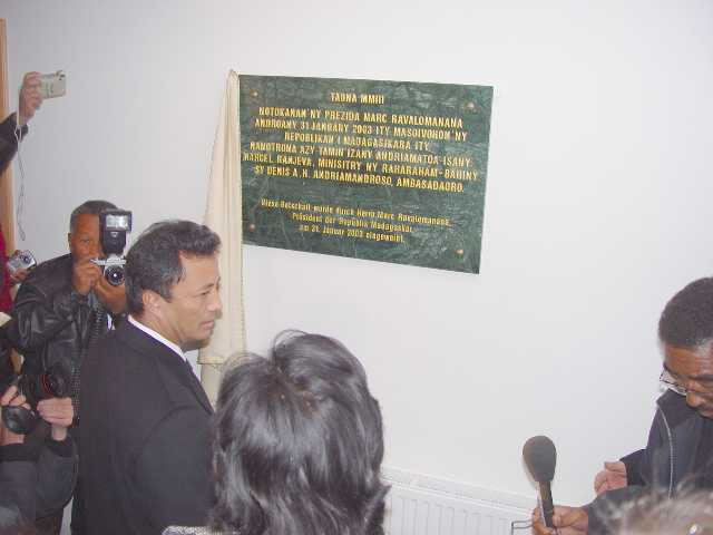 Präsident Marc Ravalonamana enthüllt die Gedenktafel