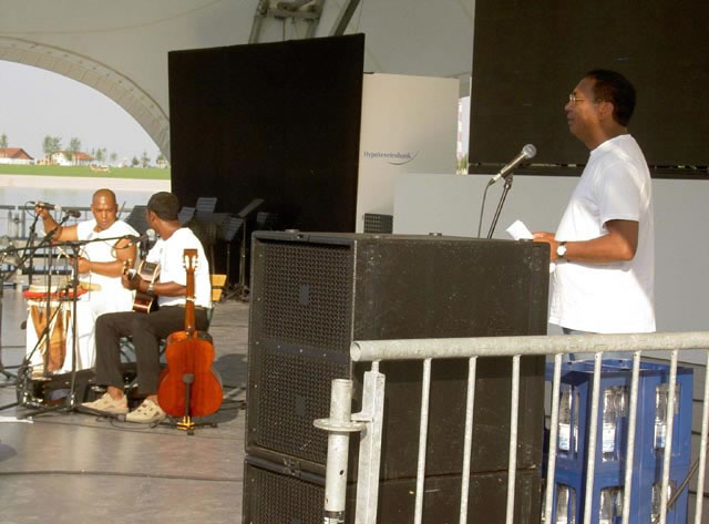Prof. Mahefa, Vorsitzender der Deutsch-Madagassischen Gesellschaft, moderierte auf der Seebühne der BUGA