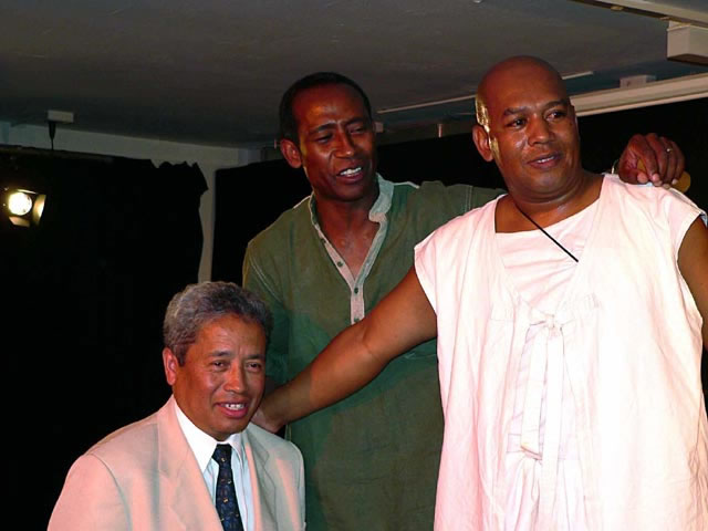 Dr. Denis Andriamandroso, madagassischer Botschafter in Deutschland, mit Ricky und Dama
